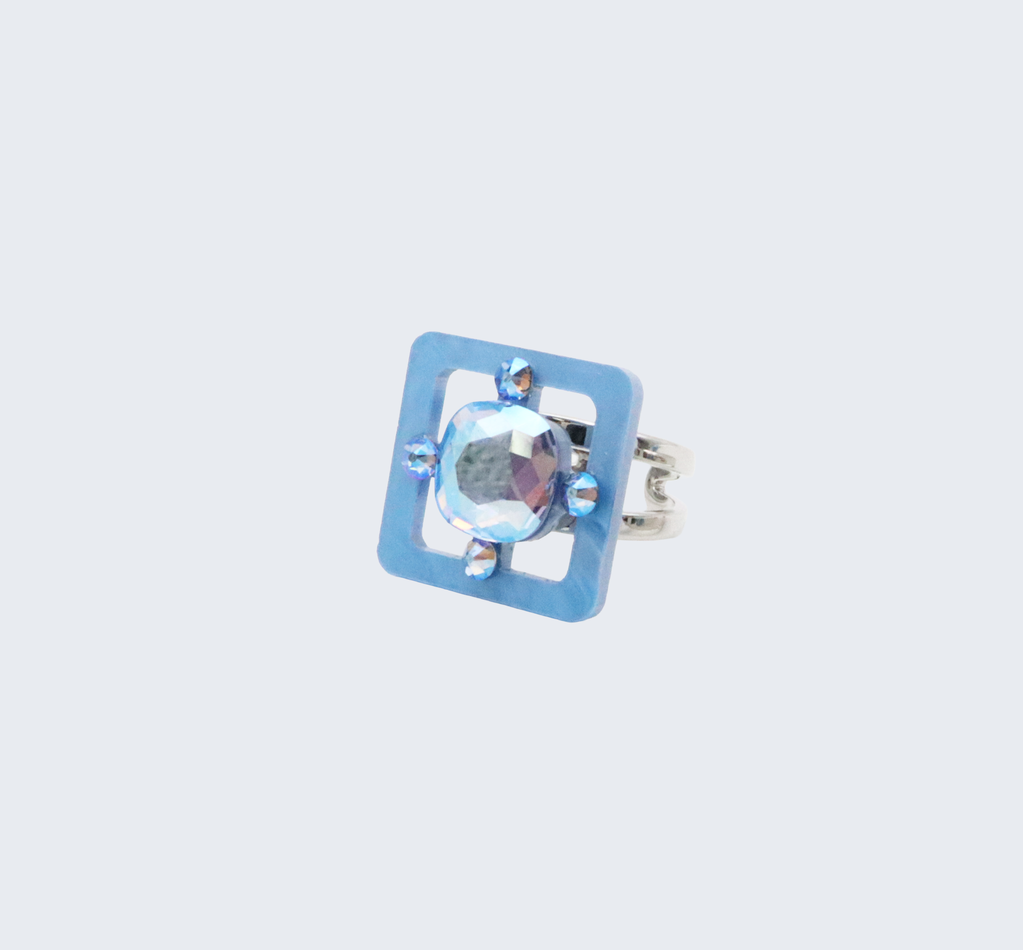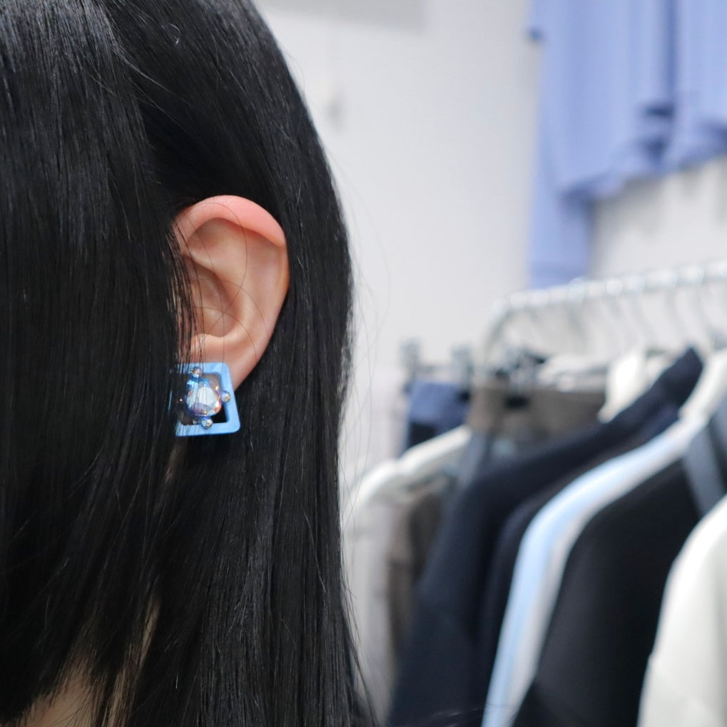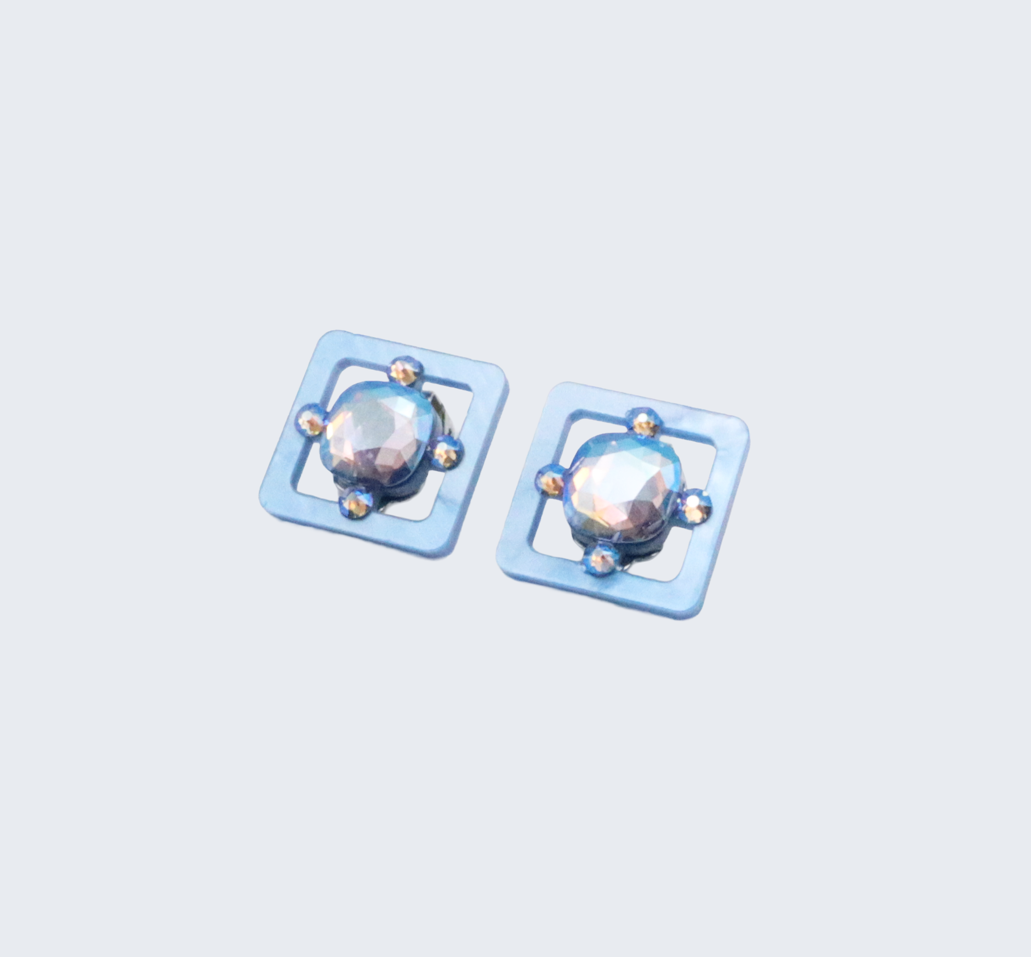 マーブル模様の綺麗なアクリルに、オーロラに光るクリスタルガラスを装飾したキラキラのアクセサリーです。