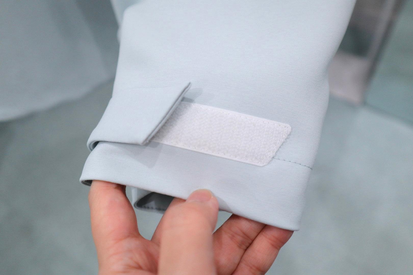■袖は面ファスナー(ベリベリとはがせるテープ)がついており、絞ることができます。