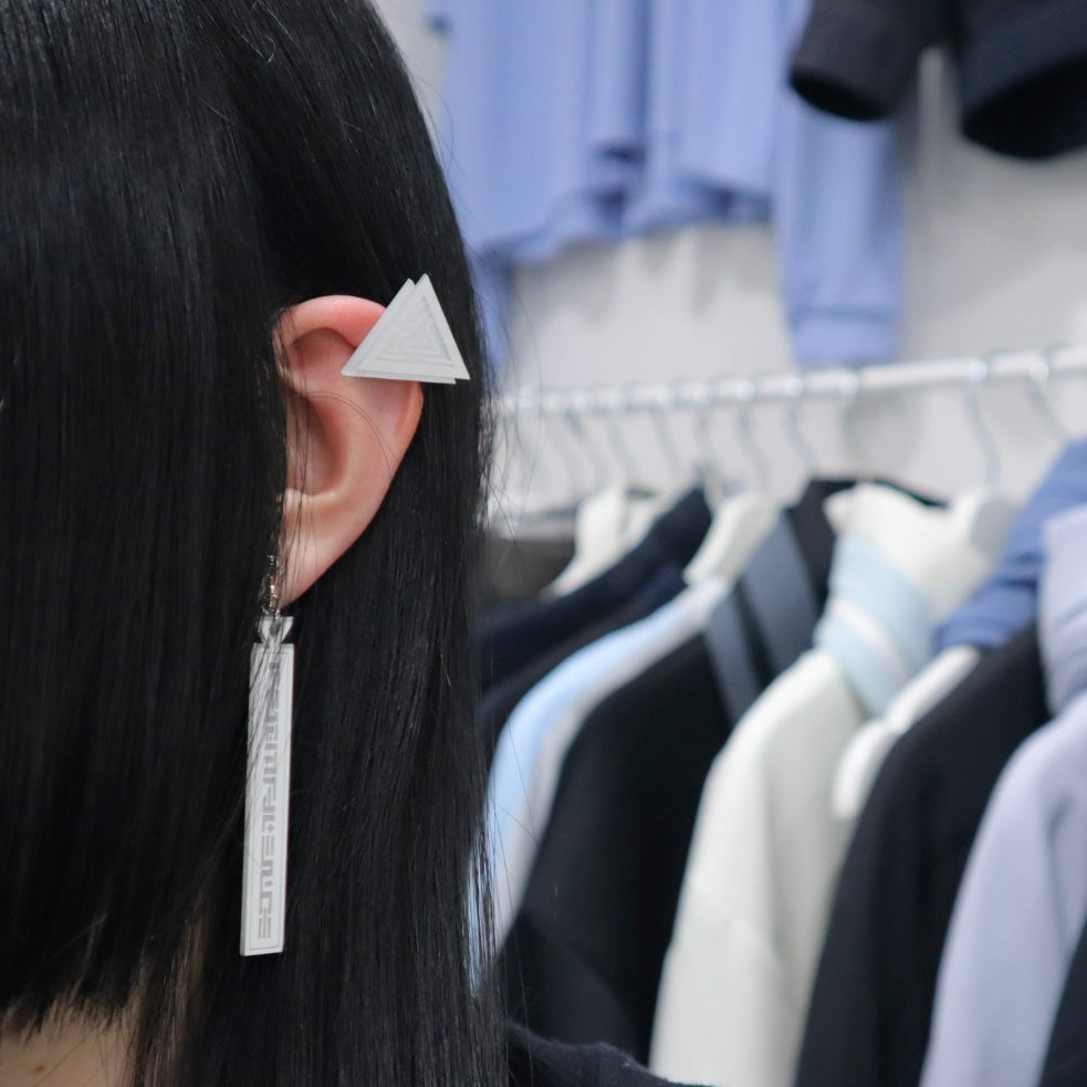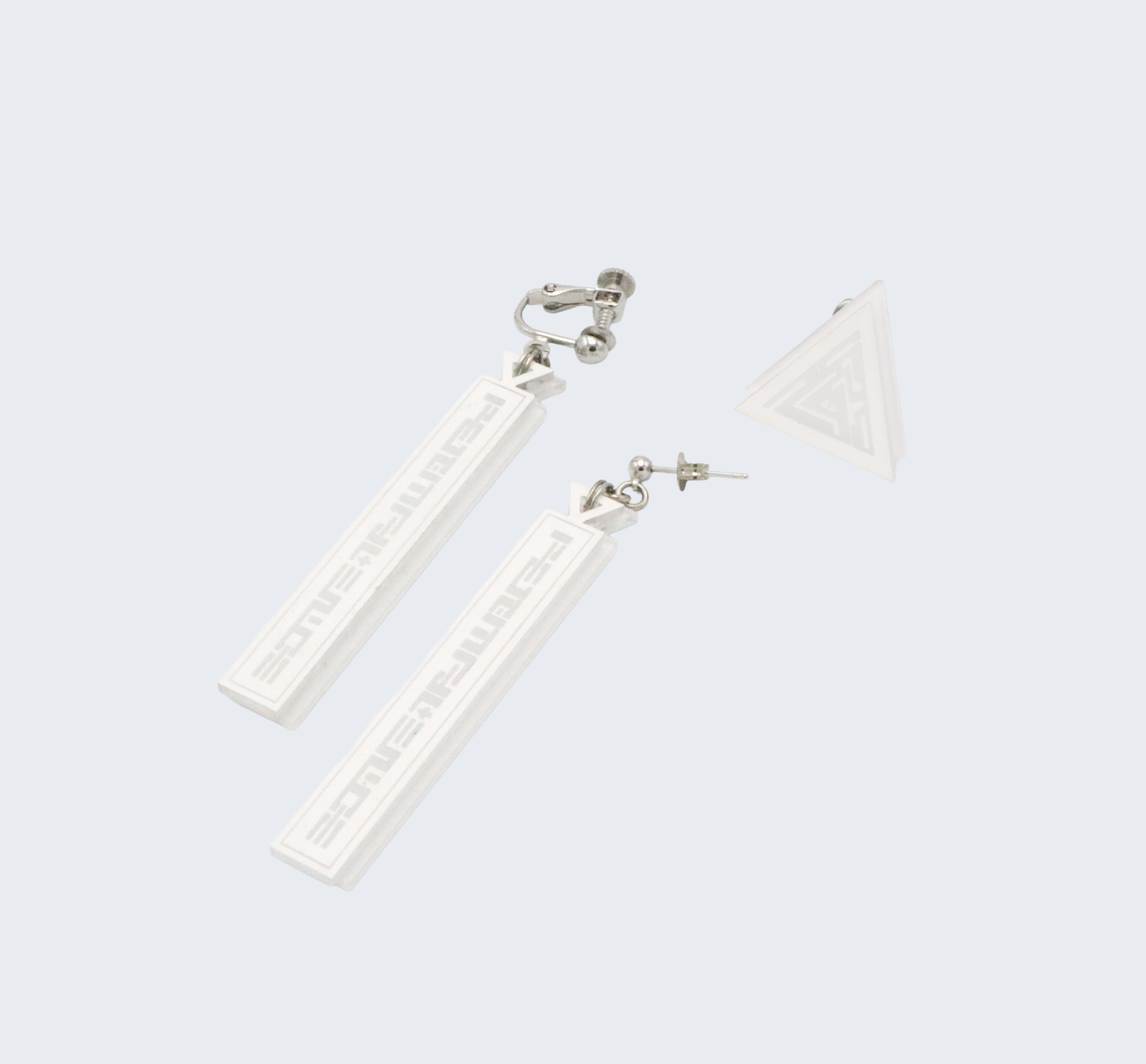 PERMANENCEのロゴが彫刻された、アクリル製のピアス・イヤリング/イヤークリップです。