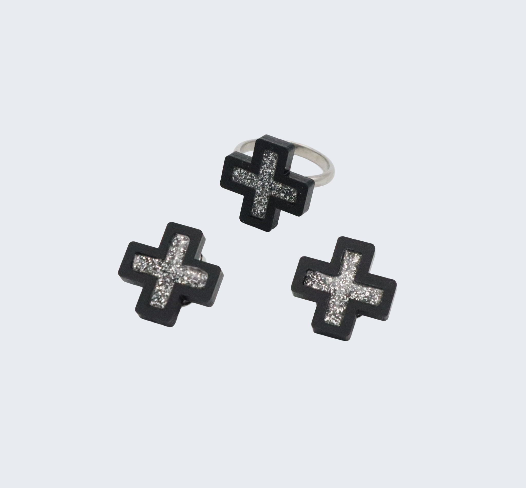 アクリルの中にグリッター素材をとじこめた、キラキラのアクセサリーです。
