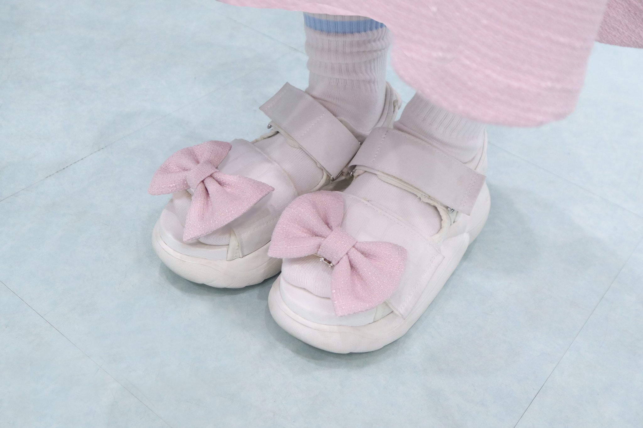 ■シューズクリップはパンプス等に取り付けてご使用いただけます。写真ではつま先側から取り付けていますが、足首側から取り付けた方が外れにくくなります。シューズ以外にも鞄など、ご自由にお使いください。